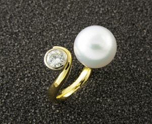 „Fiafia“ Damenring in Weissgold 750, Südseeperle D= 10 mm,