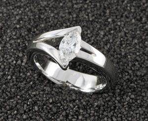Damenring in Weissgold 750, Kunden-Diamantnavette