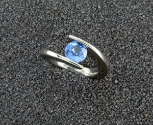 Damenring in Weissgold 750, hellblauer Saphir (Kundenstein)