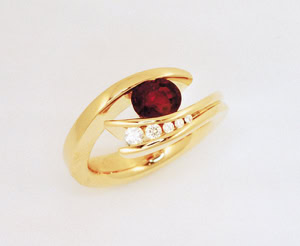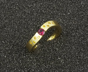 "Swing" Damenring, Gelbgold 750, Rubin im Brillantschliff 0,34 ct.