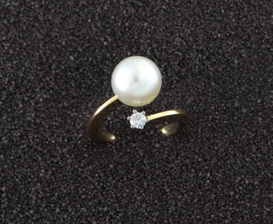 Damenring in Weiss- & Gelbgold 750, Südseeperle naturfarben, Lüster fein, 12,5 mm und Kundenbrillant