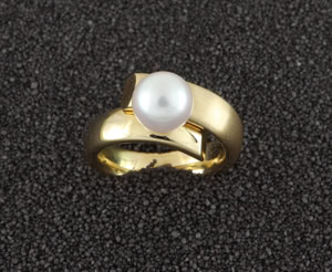 Damenring in Gelbgold 750, Akoyaperle D= 8,1 mm