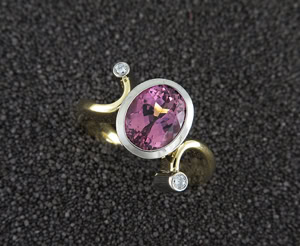 Damenring in Weiss- & Gelbgold 750, Rosaturmalin 1,81 ct.