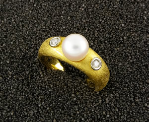 „Spirit“ Damenring in Gelbgold 750, Südseeperle mit perfektem Lüster,