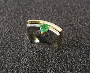 Verlobungsring in Gelb- und Weissgold 750, Tansanit-Trillant 1,88 ct.