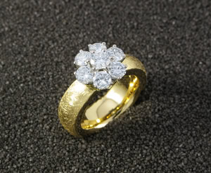Cocktailring in Weiss- & Gelbgold 750, 7 Brillanten 1,40 ct. F/vs