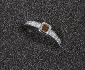 Damenring in Weissgold 750, Radiant-Diamat 0,35 ct. cognac/vs